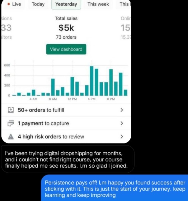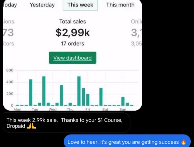 Before this course, I was stuck in analysis paralysis. DropAid's guidance gave me the clarity and confidence to launch my store. Now, I’m scaling to $10K months. Unbelievable!